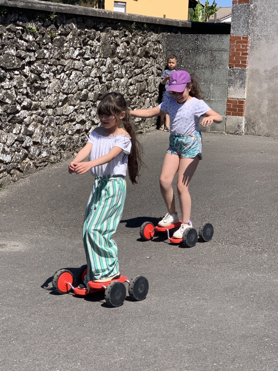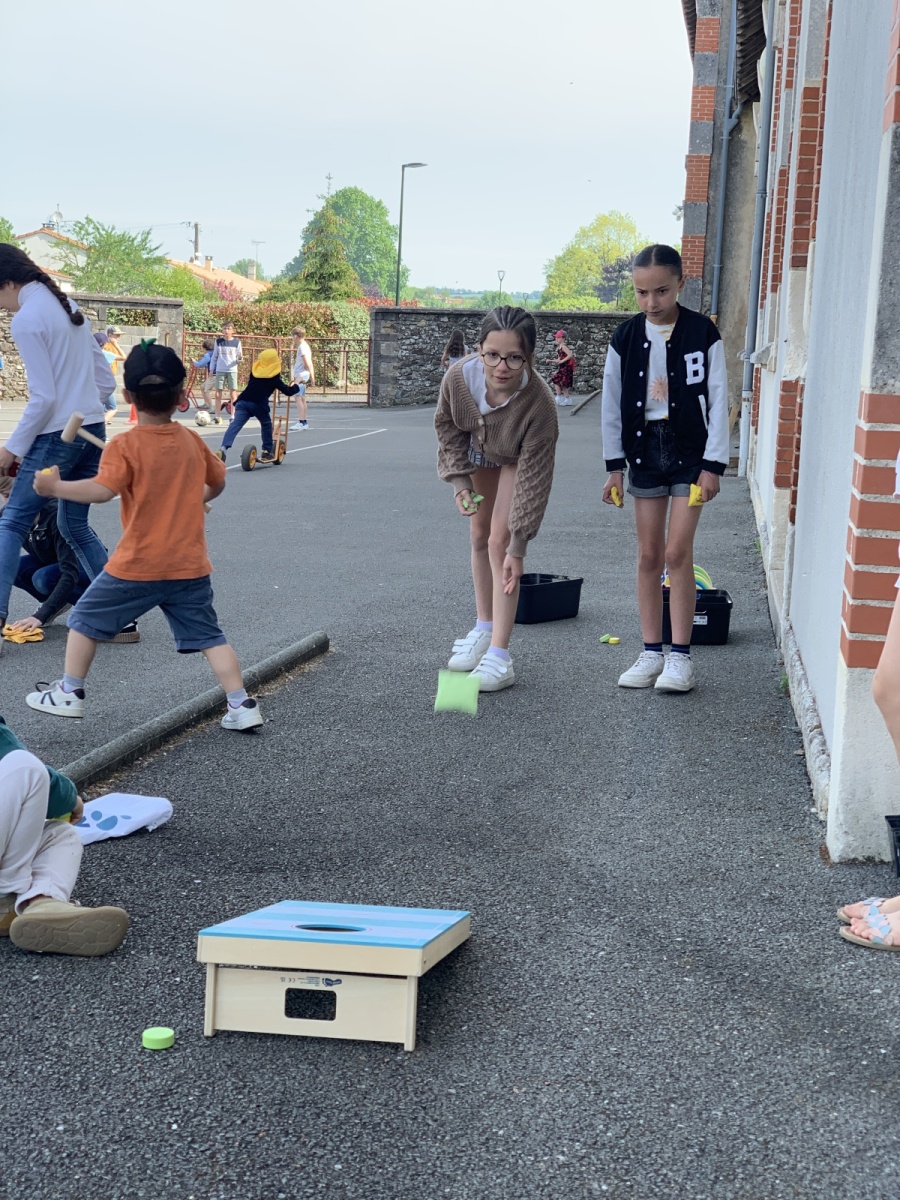 Pour le printemps, les enfants ont pu profiter de plusieurs nouveautés dans la cour de récréation : deux nouveaux vélos, deux pédaliers, un jeu de cornhole, un jeu de criquet, un morpion géant ainsi que deux grandes tables en bois.