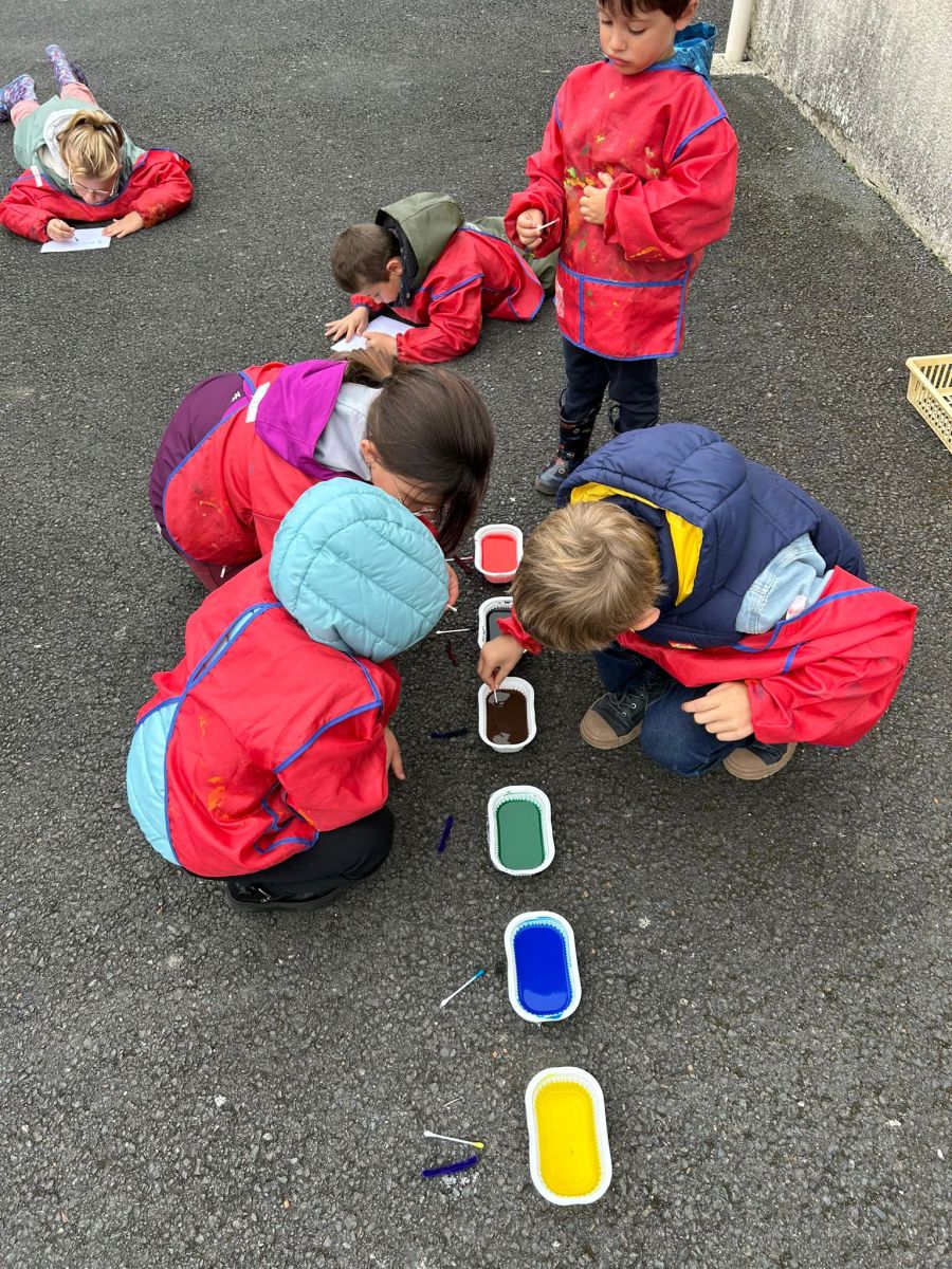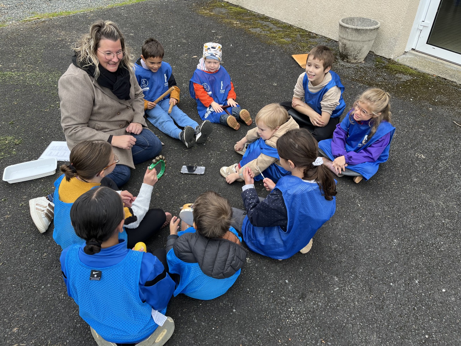 Ce vendredi 3 octobre, l’ensemble des enfants de l’école se sont réunis pour vivre la première matinée “école dehors”. En lien avec notre projet d’année, les 5 ateliers proposés portaient sur l’école d’autrefois.