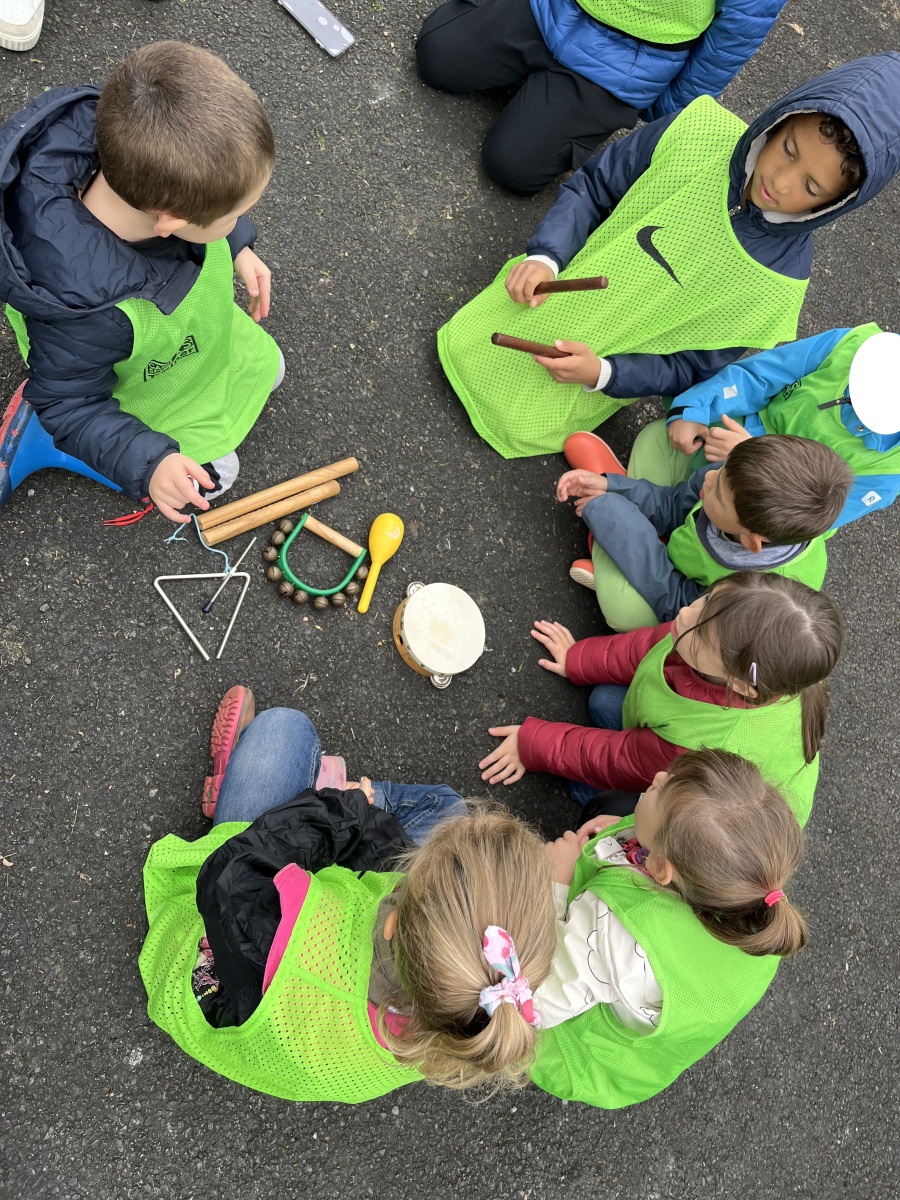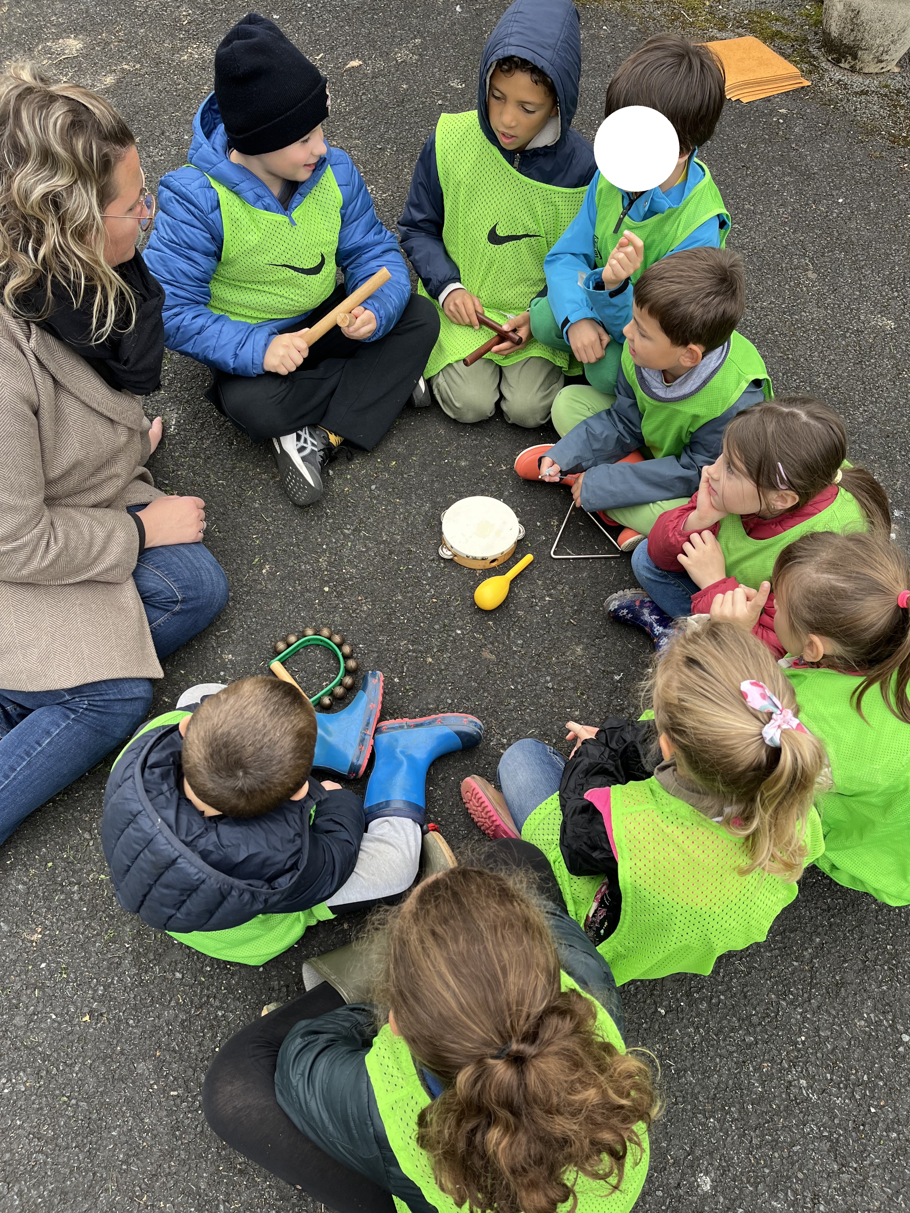 Angélique dirigeait un atelier musical. Les enfants chantaient une comptine traditionnelle (Frère Jacques) en essayant d’ajouter un rythme à l’aide d’instruments.