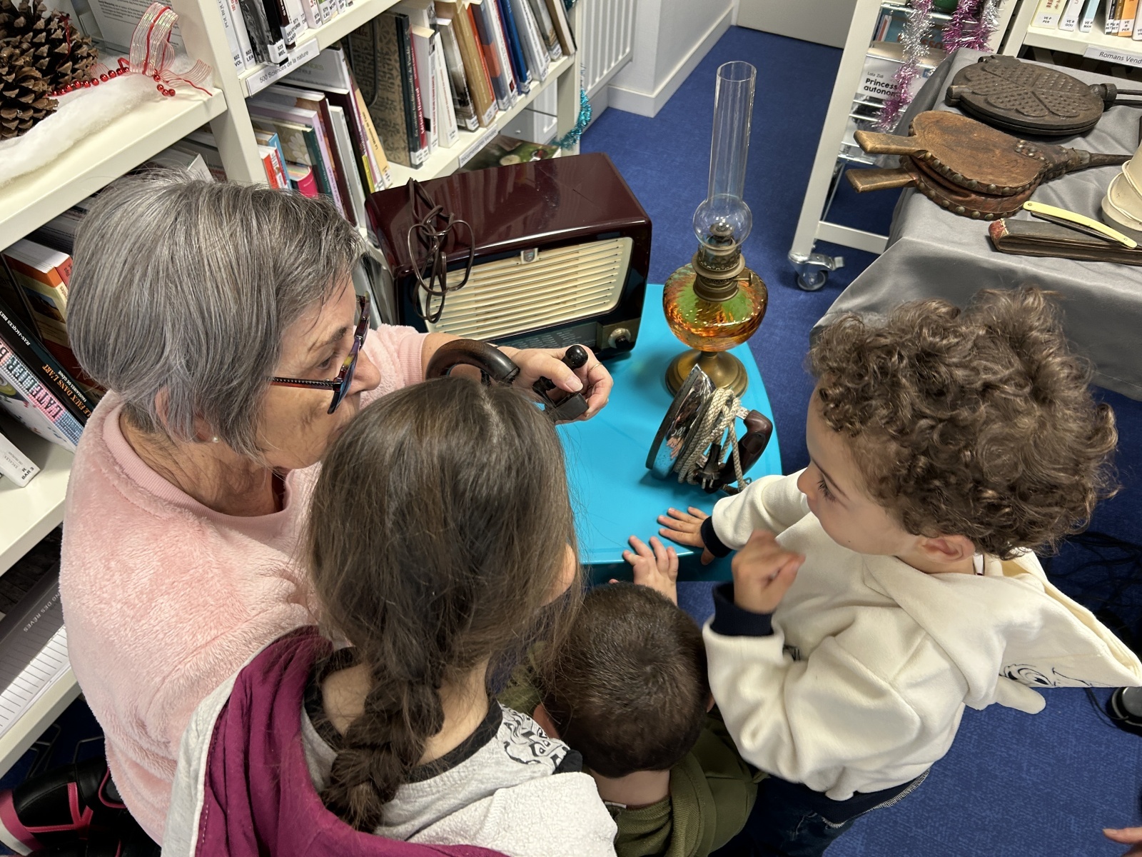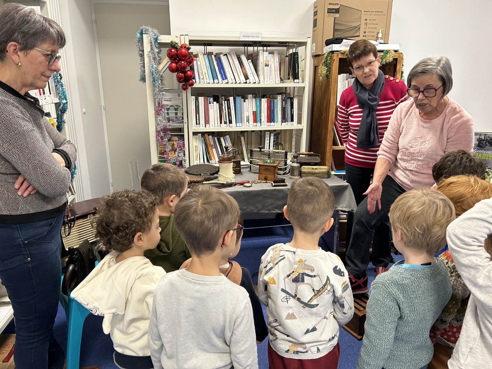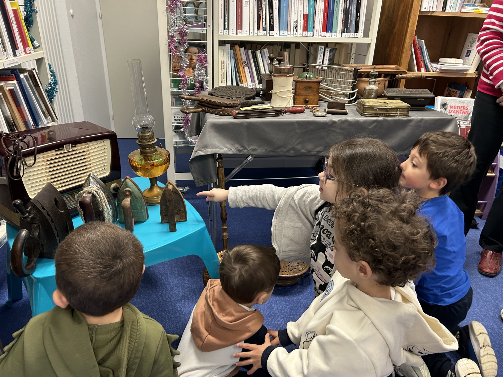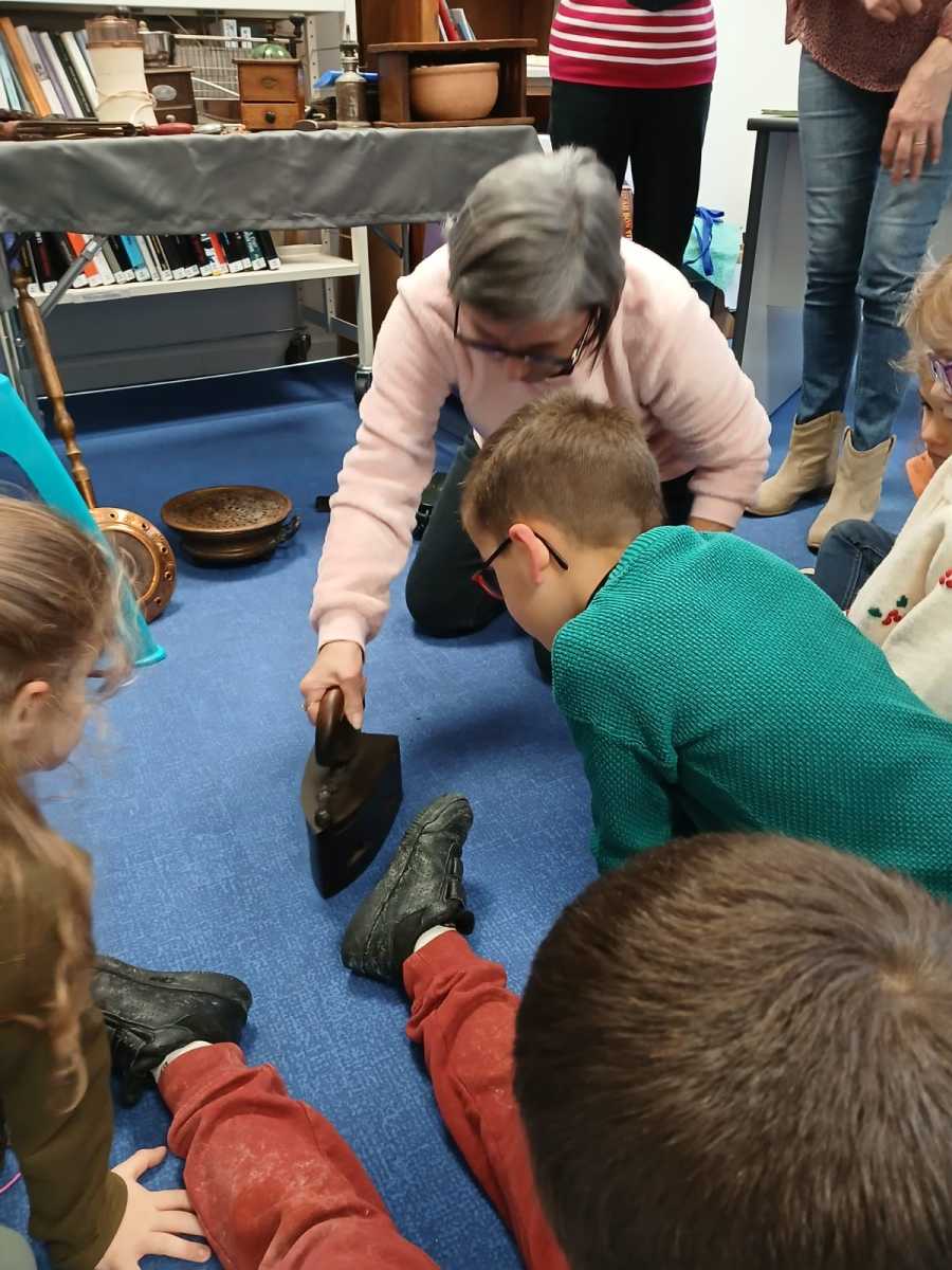Cette semaine, les enfants sont allés à la bibliothèque. Les bénévoles avaient rapporté plusieurs objets anciens que nous essayions d’identifier. Nous avons ensuite pu regarder les livres et en choisir un à emprunter.