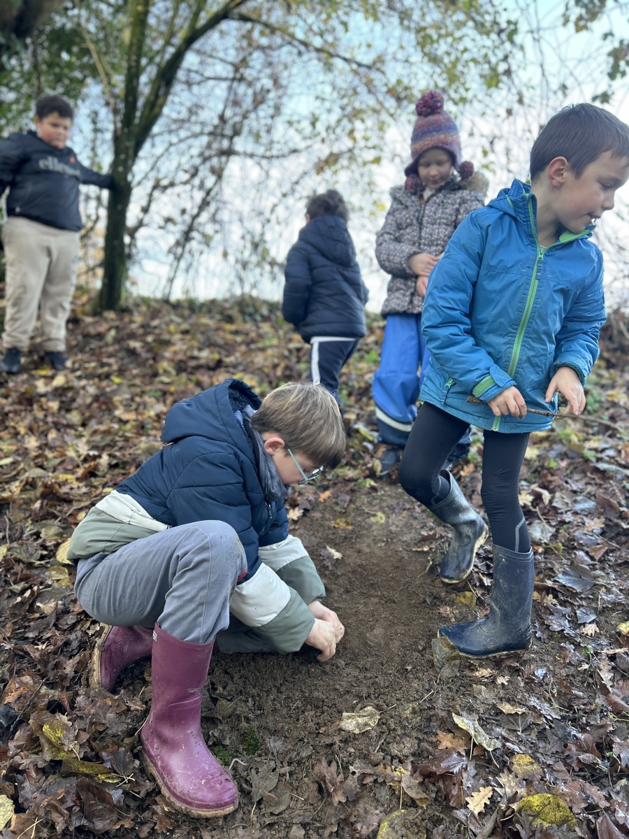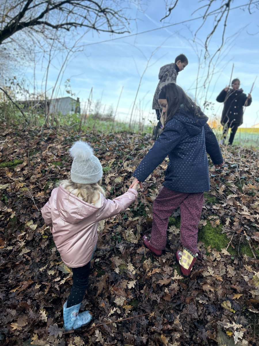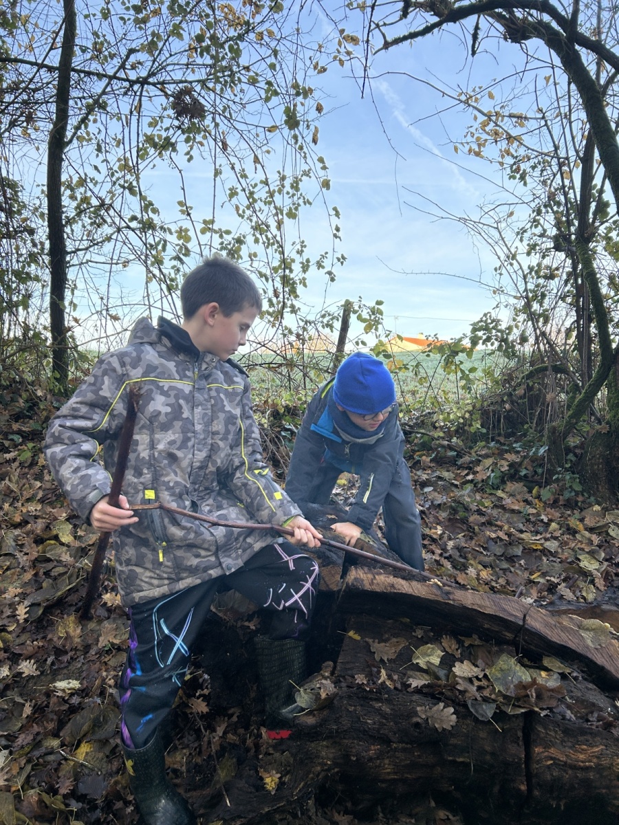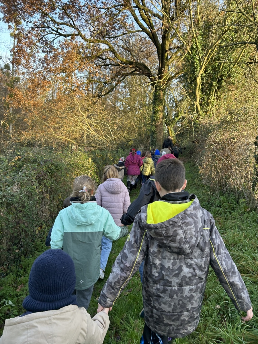 Tous les enfants de l’école se sont réunis pour partager la deuxième matinée « école dehors » de l’année. Nous avons marché dans les chemins de la commune. Sur notre parcours, nous nous sommes arrêtés plusieurs fois afin de réaliser des ateliers.