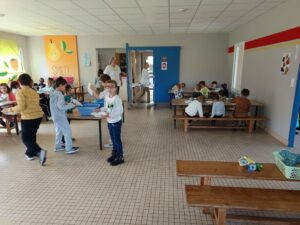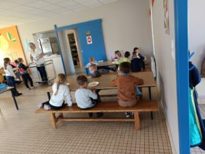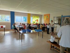 Les repas sont préparés par le prestataire Convivio puis réceptionnés et réchauffés par Chantal. Elle est aidée par Angélique Frouin pour le service à table.